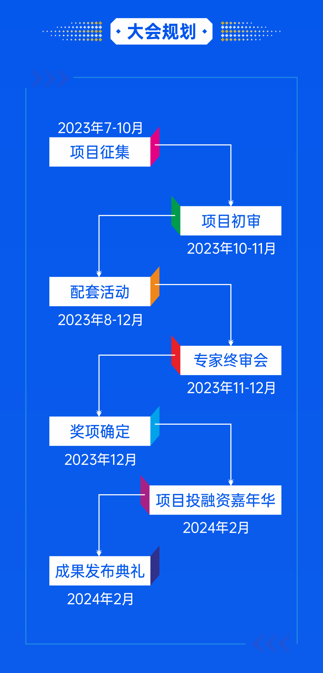 本届创投会以“智创中国 点亮梦想”为主题,设置新一代信息技术、生物医药、高端装备制造、新材料、绿色低碳和数字经济六大行业领域,通过项目征集、项目初审、配套活动、专家终审、奖项确定、项目投融资嘉年华、成果发布典礼、会后服务等多个环节,为创新创业项目建平台、解难题、促转化、助创业,为创新创业要素集聚发展、提升人才技术赋能价值。